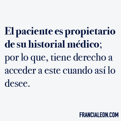 | Artículo 28 de la Ley General de Salud, núm. 42-01 | “Todas las personas tienen los siguientes derechos en relación a la salud:… f) A la información adecuada y continuada sobre su proceso, incluyendo el diagnóstico, pronóstico y alternativas de tratamiento… i) Al registro o constancia escrita de todo su proceso de salud-enfermedad…”. |
