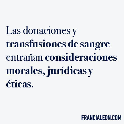 Sin embargo, las donaciones y transfusiones de sangre acarrean un conjunto de consideraciones morales, jurídicas y éticas que han sido objeto de numerosos análisis, estudios y tratados.